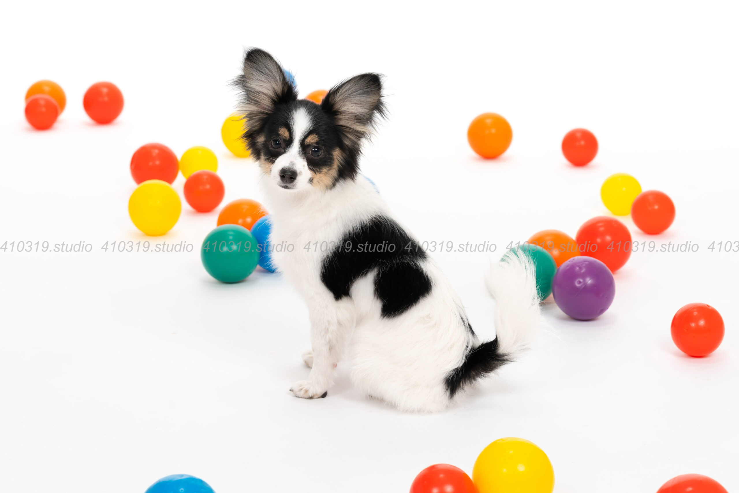 ご利用ありがとうございますパピヨン5か月男の子🐶まだパピーカラーボールもランドセルも頑張りました📸📸..ご利用ありがとうございました😊—ふぉとさいく 410319.studio—